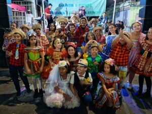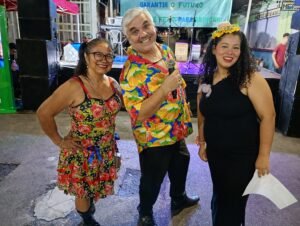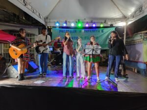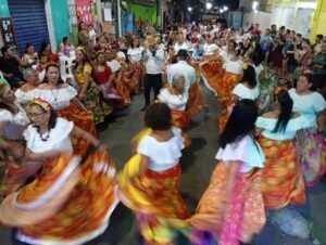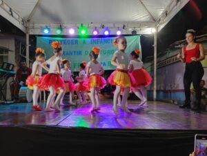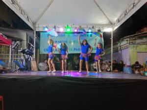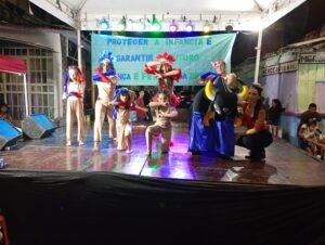 A modalidade do Complemento Escolar dançou a dança do fogo e para fechar a noite com as apresentações culturais, o também tradicional Carimbó Vida Alegre com as senhoras do Projeto Família Cidadã que contou com a novata Elda, que participou das apresentações musicais cantando e tocando violão.
