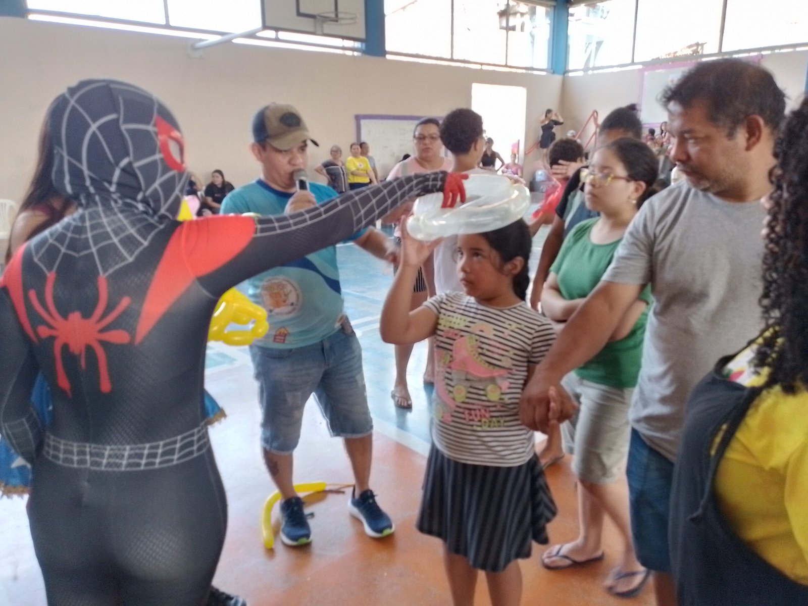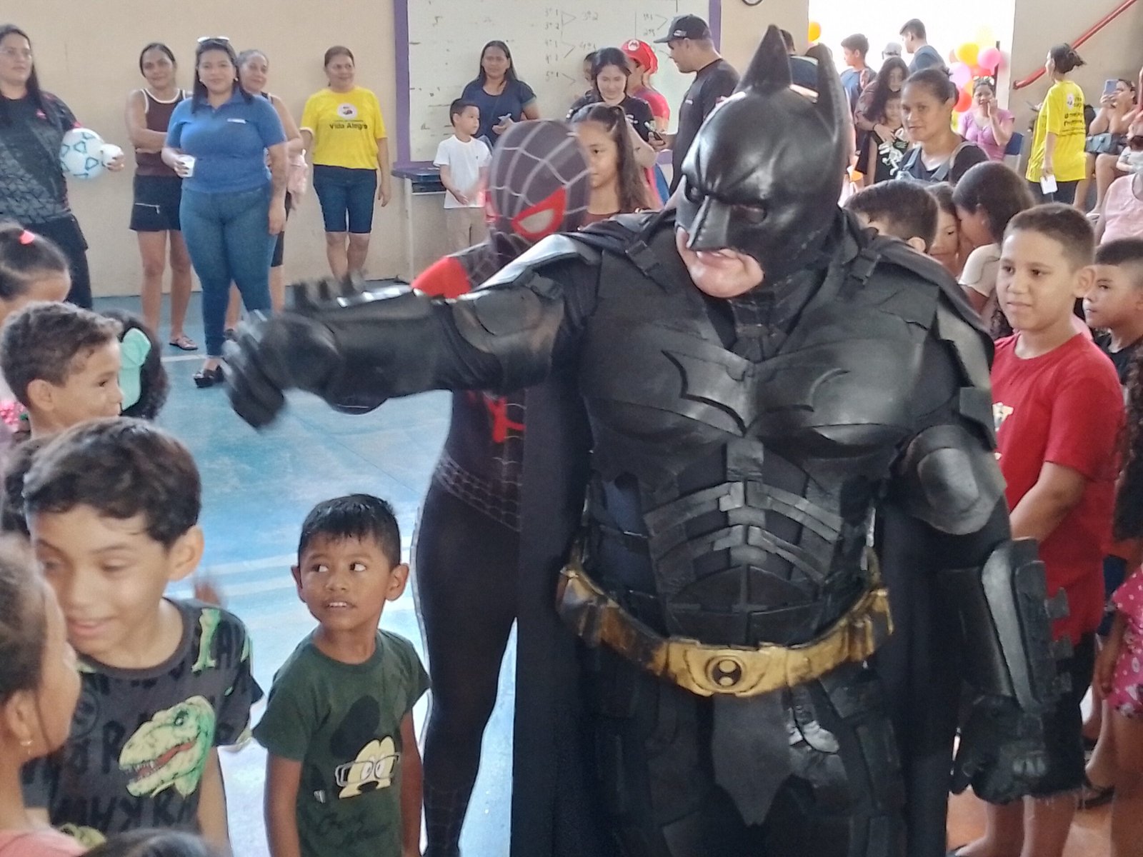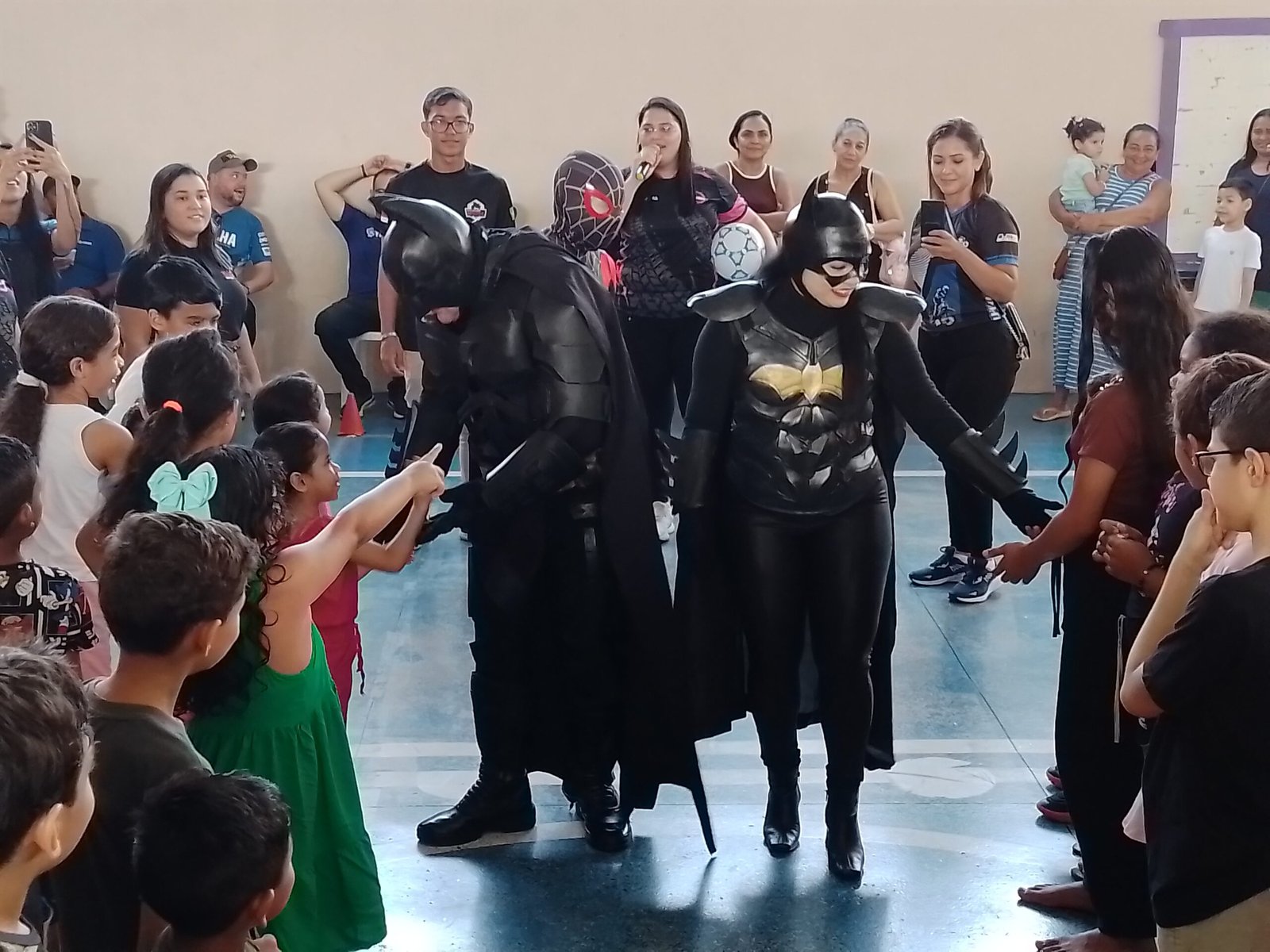 Foi uma manhã muito animada com as crianças participantes de todas as modalidades. A festa do dia 12 foi realizada na Quadra Poliesportiva da Escola Estadual Adonai Politi, no bairro Vila da Prata, ao lado do CFVA. Foram mais de 400 crianças que fizeram a festa, participando e interagindo nas brincadeiras, jogos, pinturas divertidas no rosto. Mais a principal atração que mexeu com a criançada foi com a chegada triunfante e explosiva dos heróis, os personagens Batman e Batgirl, um verdadeiro delírio, gritaria, emoção, barulho ensurdecedor na quadra. O homem e mulher morcego fizeram fotos, selfies com as crianças arrancando sorrisos alvoraçados. Além de personagens da DC, as heróis:  Mulher Maravilha e Mulher Aranha da Marvel, também estavam presentes animando dando ainda mais cor e brilhantismo no evento.