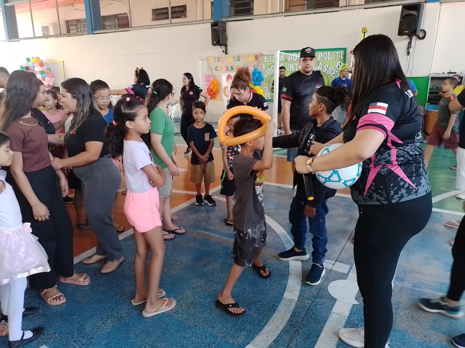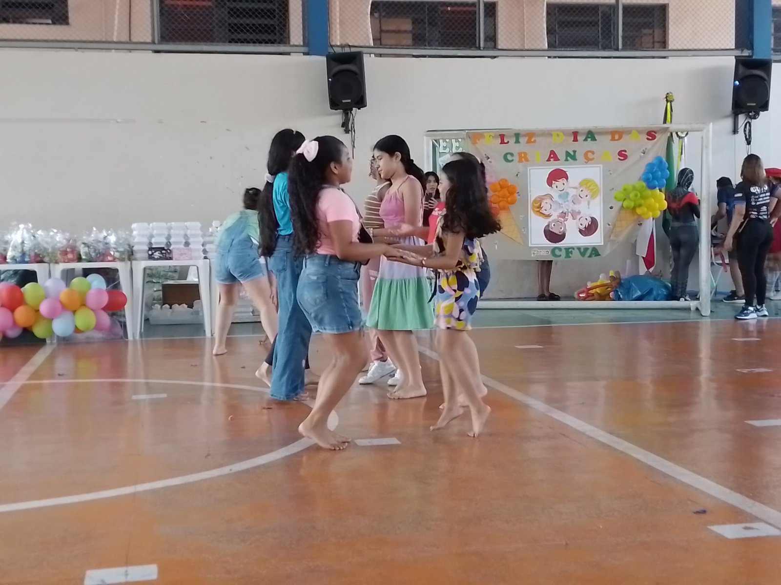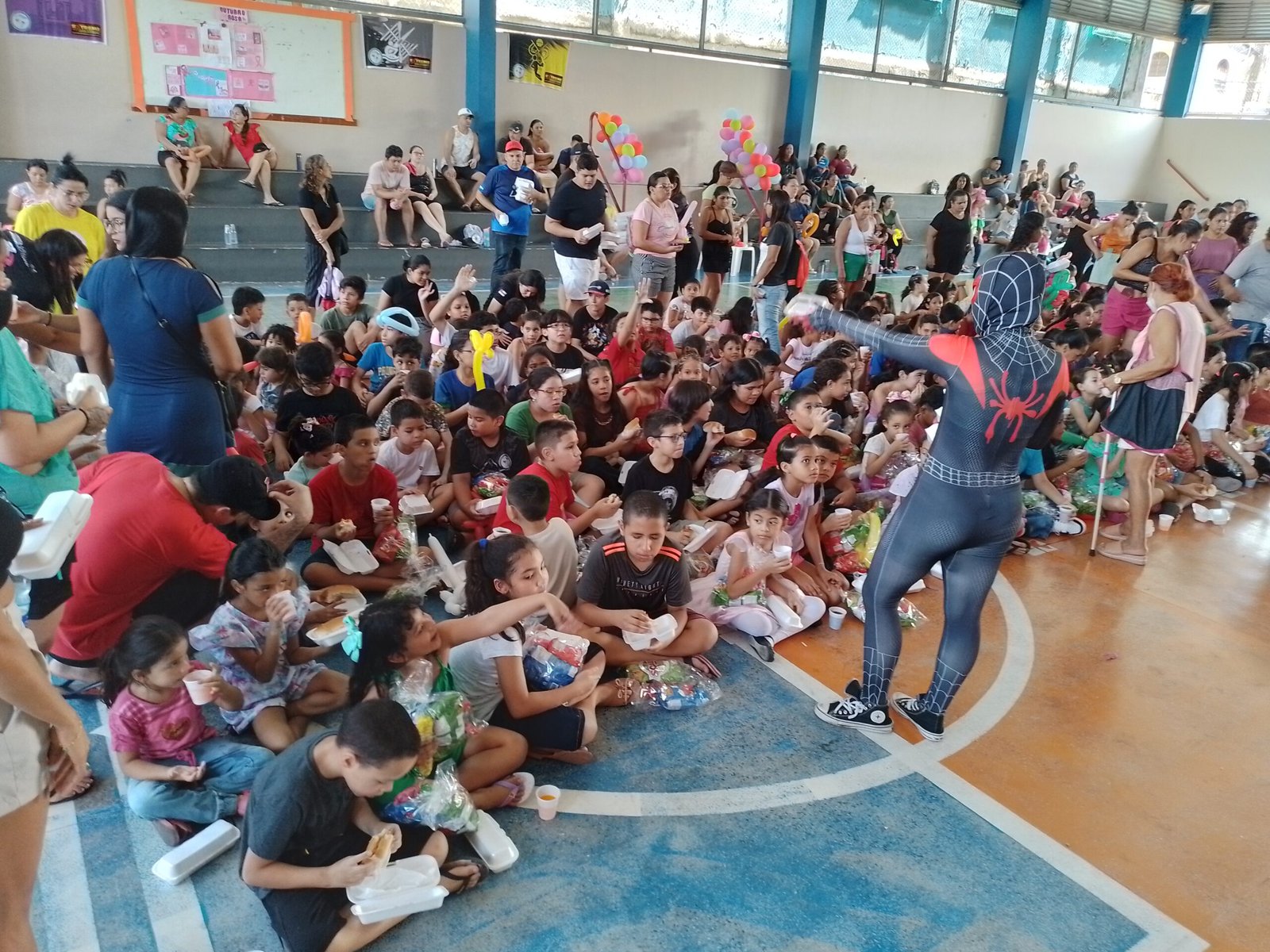 Foi uma manhã muito animada com as crianças participantes de todas as modalidades. A festa do dia 12 foi realizada na Quadra Poliesportiva da Escola Estadual Adonai Politi, no bairro Vila da Prata, ao lado do CFVA. Foram mais de 400 crianças que fizeram a festa, participando e interagindo nas brincadeiras, jogos, pinturas divertidas no rosto. Mais a principal atração que mexeu com a criançada foi com a chegada triunfante e explosiva dos heróis, os personagens Batman e Batgirl, um verdadeiro delírio, gritaria, emoção, barulho ensurdecedor na quadra. O homem e mulher morcego fizeram fotos, selfies com as crianças arrancando sorrisos alvoraçados. Além de personagens da DC, as heróis:  Mulher Maravilha e Mulher Aranha da Marvel, também estavam presentes animando dando ainda mais cor e brilhantismo no evento.